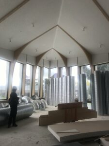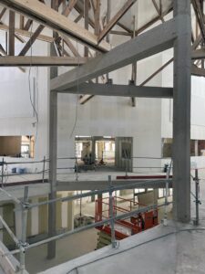 Le chantier a débuté en février 2024, initialement prévu en deux phases (la construction de l‘UCPA puis la restructuration du restaurant), il se déroule finalement simultanément afin de ne pas travailler en site occupé.