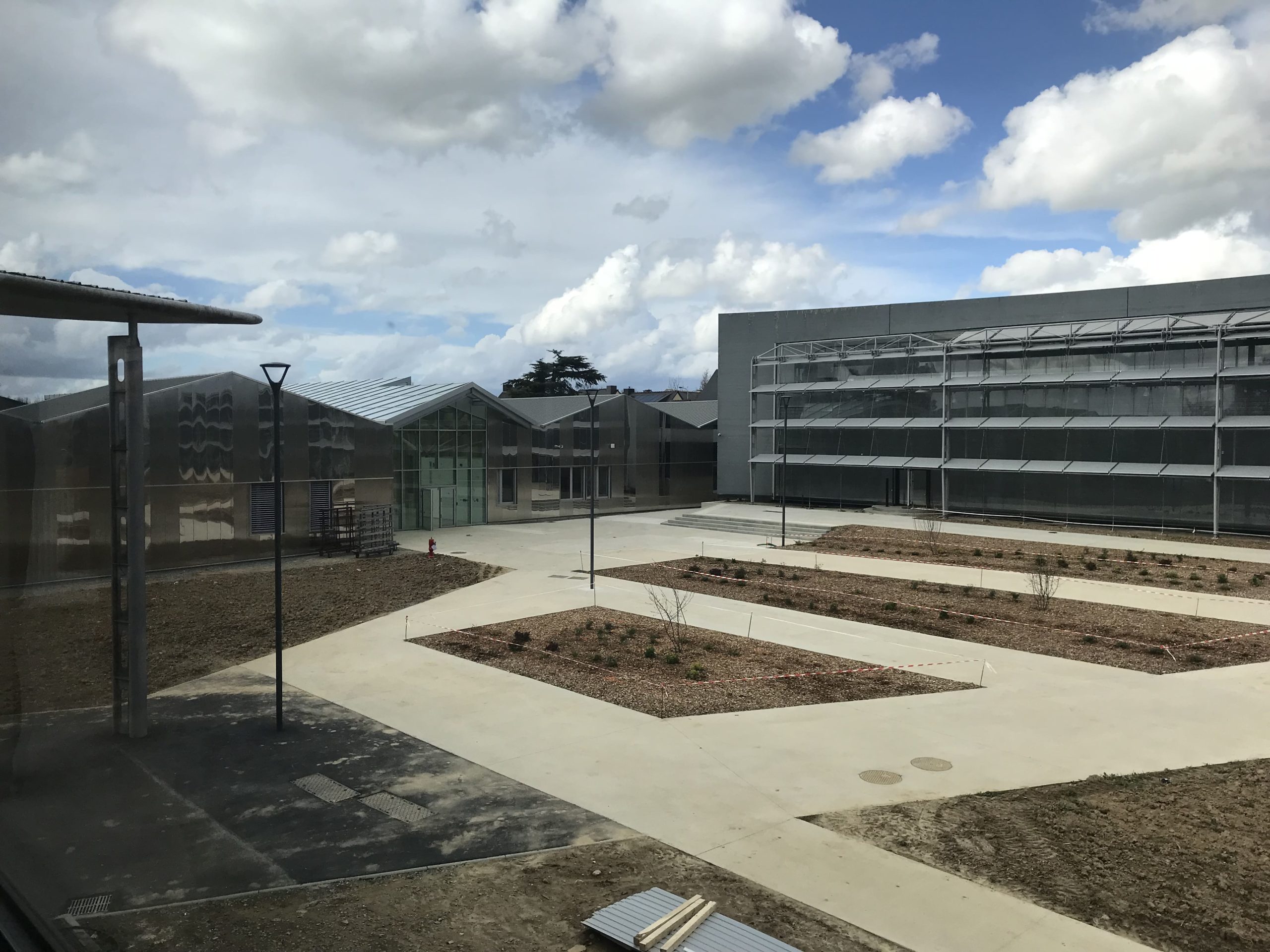 Cet ensemble de 13 000 m2 (dont 5 900 m2 existants et rénovés) s’articule en trois bâtiments autour d’un axe central, un travail en « lanières » a été effectué sur l’ensemble du terrain. Le pôle métiers avec ses ateliers fonctionne sur le principe de « chapelles », afin d’avoir une polyvalence et une vue sur les différents ateliers de part et d’autre de la « rue des métiers ». Cette dernière ne sera pas chauffée, c’est un pont thermique. Les matériaux bio sourcés comme les parois des ateliers permettront de restituer la chaleur engrangée dans la journée.