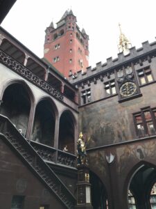 La première approche de Bâle – centre historique : situé entre les berges du Rhin et les hauteurs avec la cathédrale et le cloître, le Rathaus … quelques touches contemporaines s’y inscrivent parfaitement comme au Musée des cultures, la fontaine Tinguely