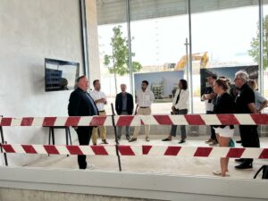 J3 – Cette 3ème journée avait pour thématique « innovations et front de mer », elle a conduit les membres du Club au quartier universitaire avec les visites de l’Ecole Supérieure de musique et de l’Ecole Allemande proposée par l’agence Joao Luis Carrilho da Graça. Puis direction le nord-est de la ville pour découvrir le quartier Marvilla, ancienne zone industrielle considérée à présent comme la « Brooklyn de Lisbonne » et notamment le programme « Prata Riverside village », ensemble de bâtiments perpendiculaires au Tage rappelant la tradition lisboète avec leurs façades imitant le fameux azulejo, les cours intérieures. La visite s’est déroulée en compagnie de l’agence Renzo Piano et du promoteur du site.